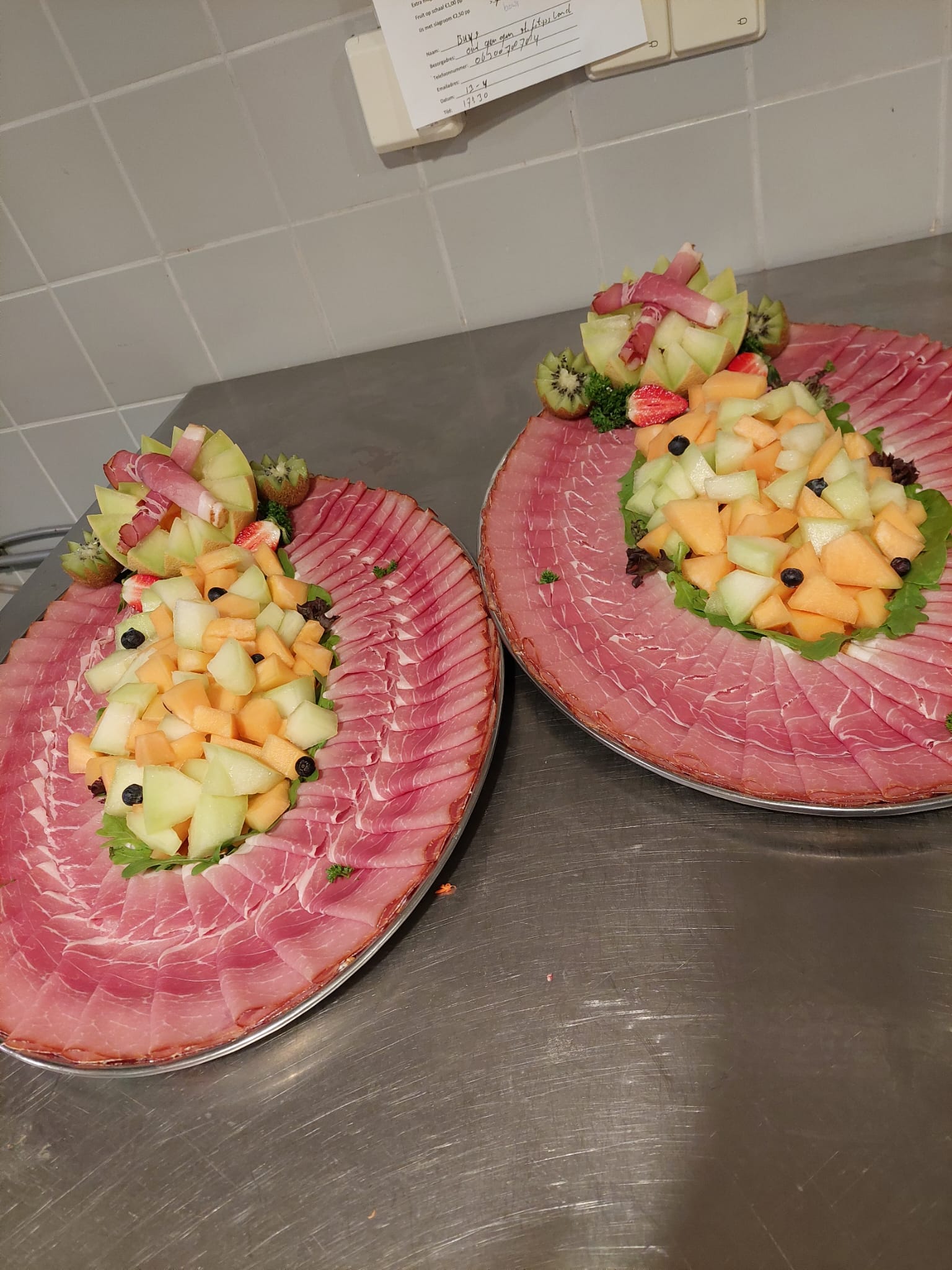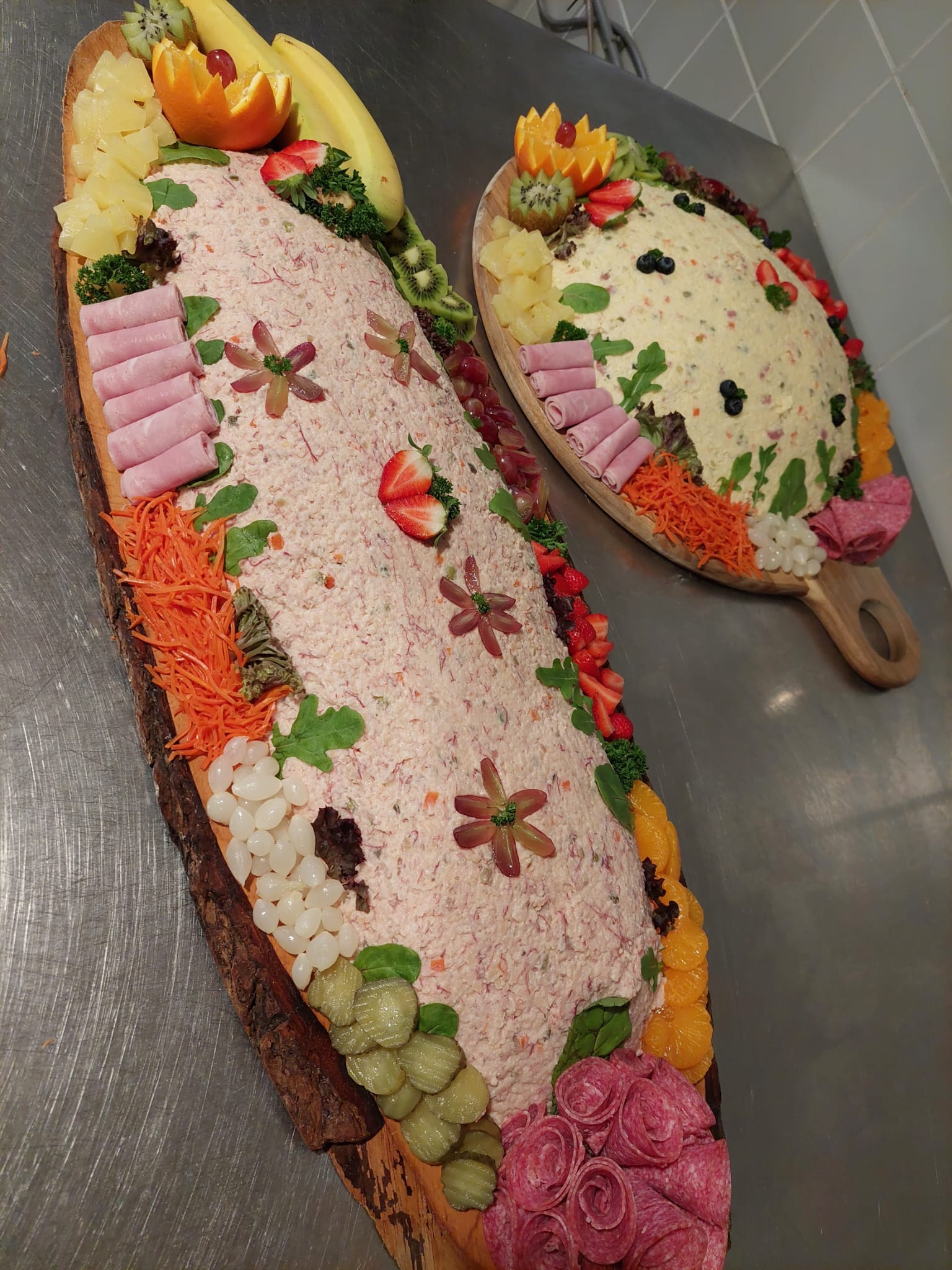 Al onze salades worden gegarneerd met rauwkost, fruit, vleeswaren of vis.